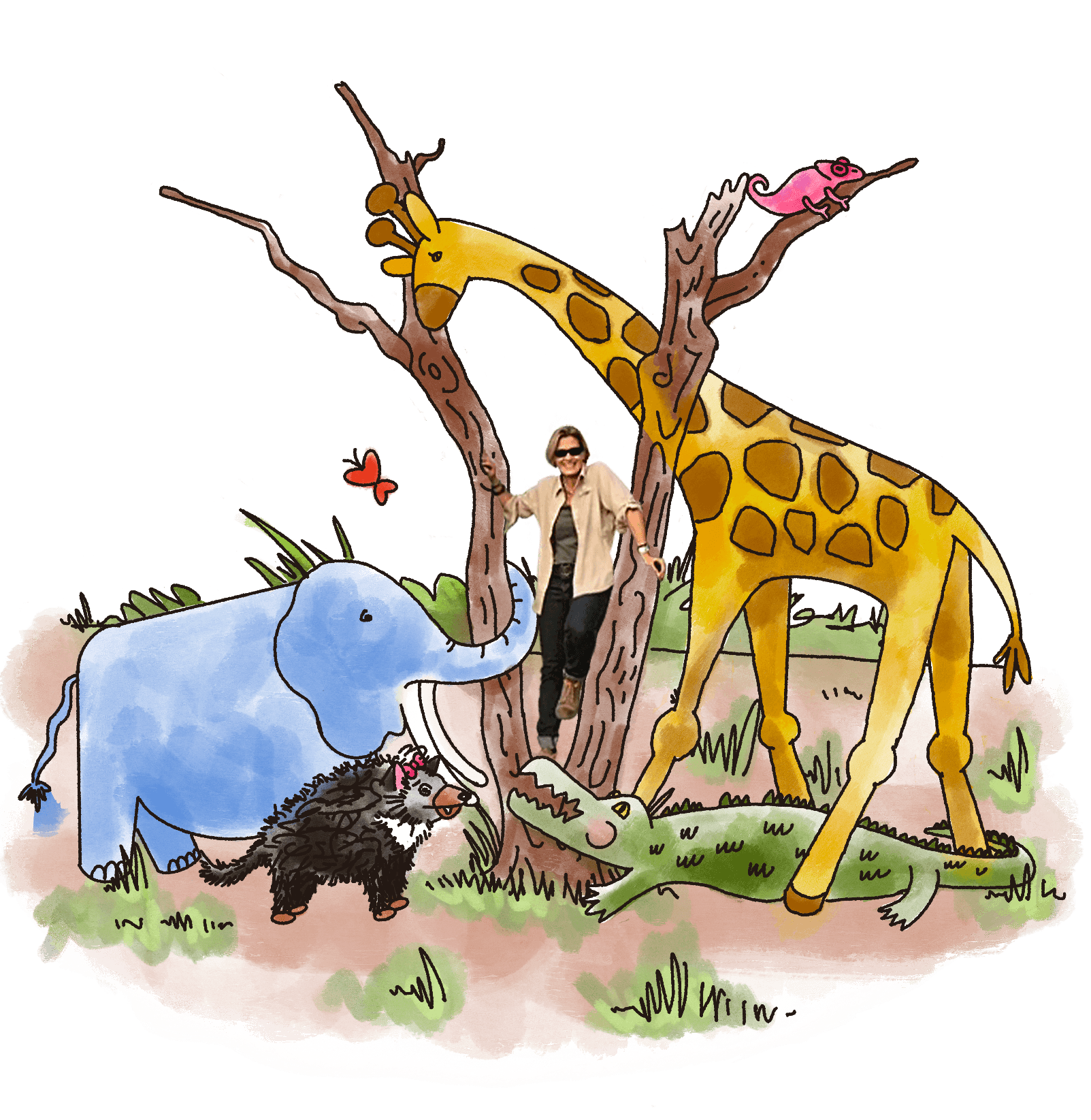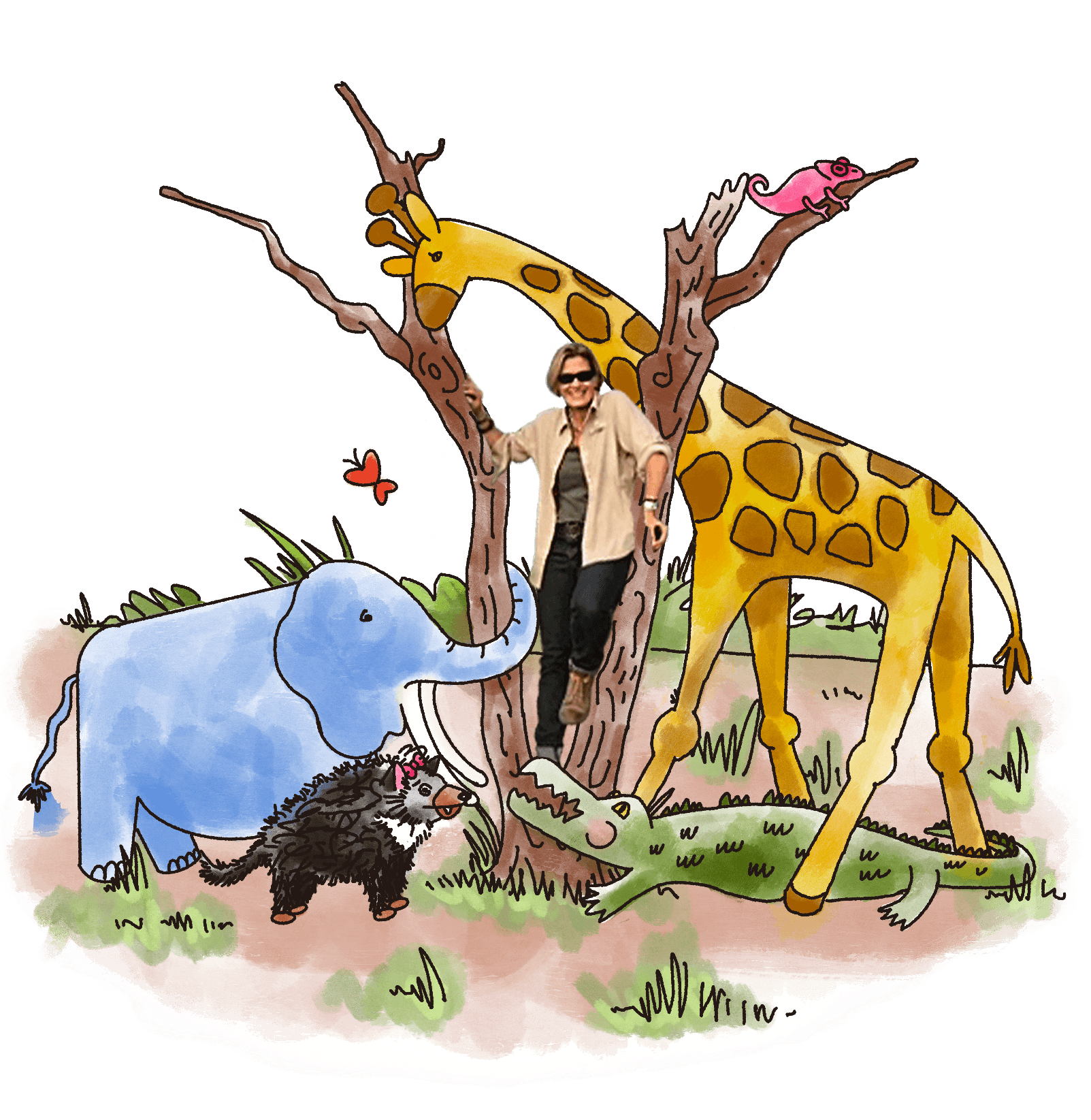 Joy was born a light hue of blue. She always felt out of place and unlike the other members of her herd. So she did everything she could to fit in, including visiting the Watering Hole everyday to transform her hide into a caked-on gray mud color. There at the magical Watering Hole is where Joy meets her new friend, Hope. Spoiler alert — this is also where Joy will meet her future friends. Hope is a butterfly who was once a lowly caterpillar who squished herself into a cocoon, where she later emerges as a beautiful butterfly. The journey to self love, experiencing joy and finding hope is a message to share and embrace.